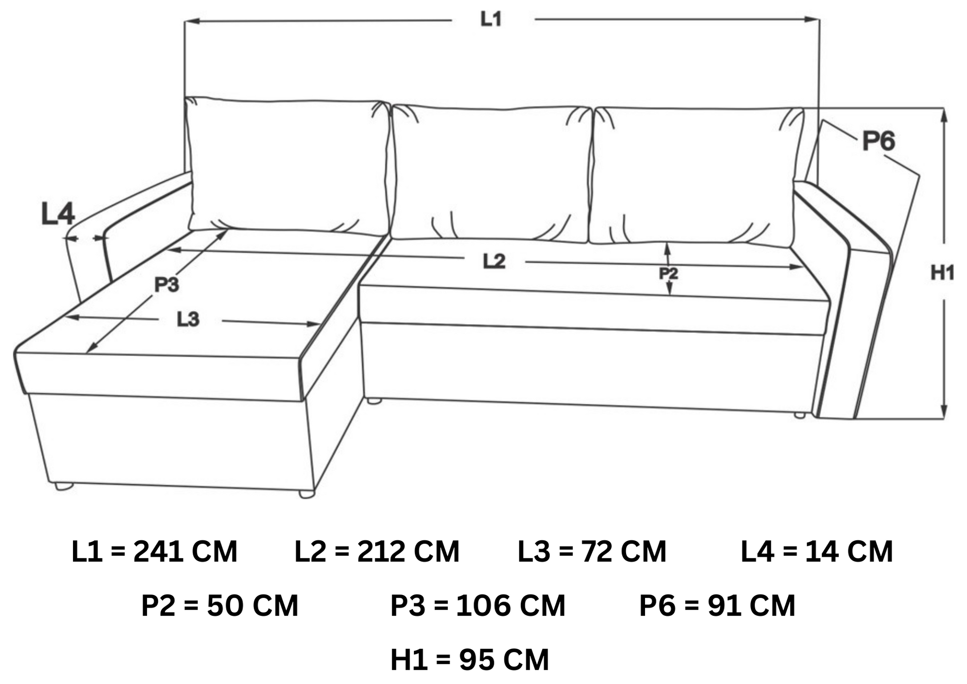 📏 Dimensiuni: L1 = 241 cm, D1 = 160 cm, H1 = 95 cm (vezi schița atașată).