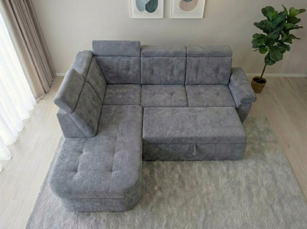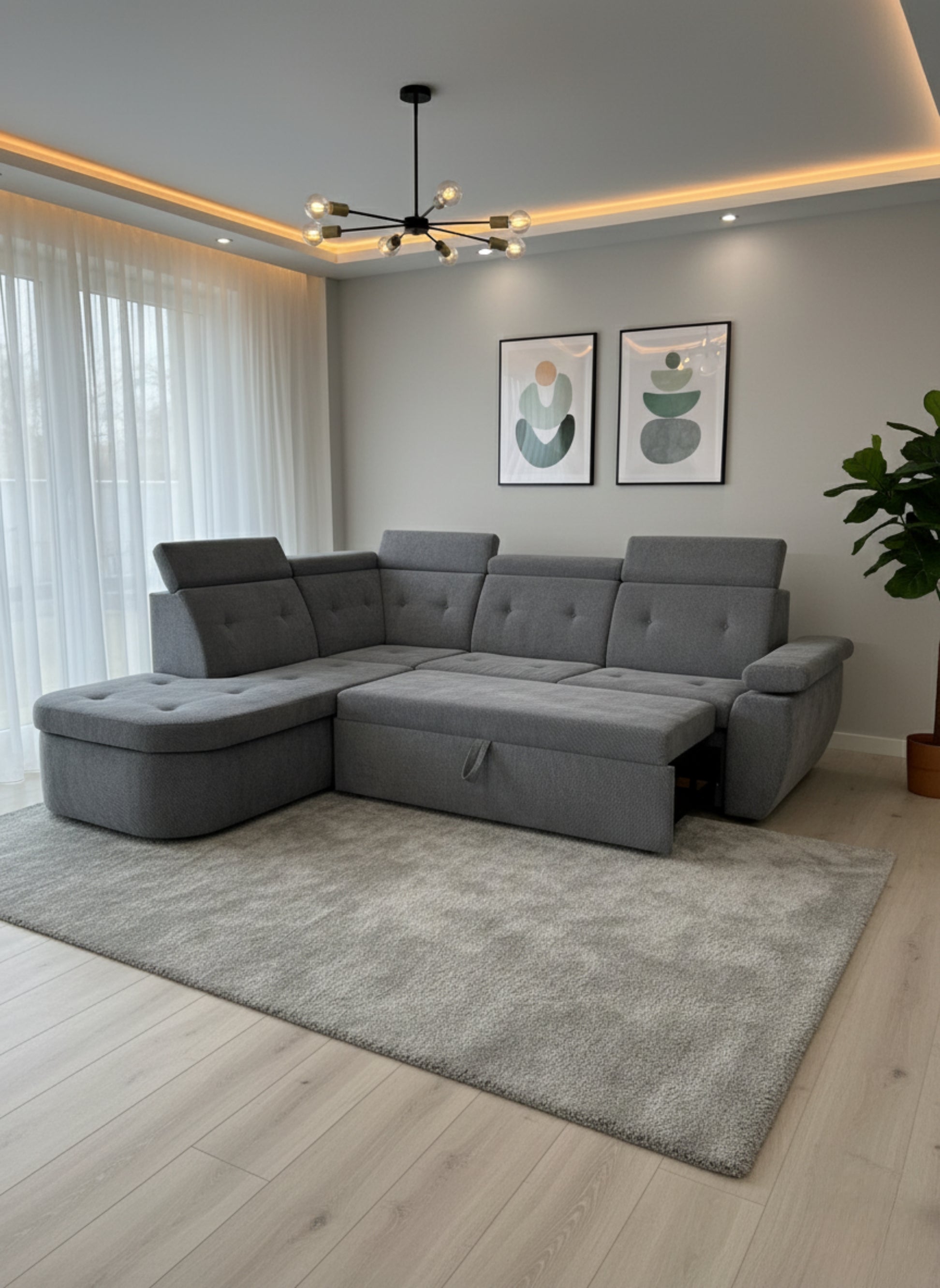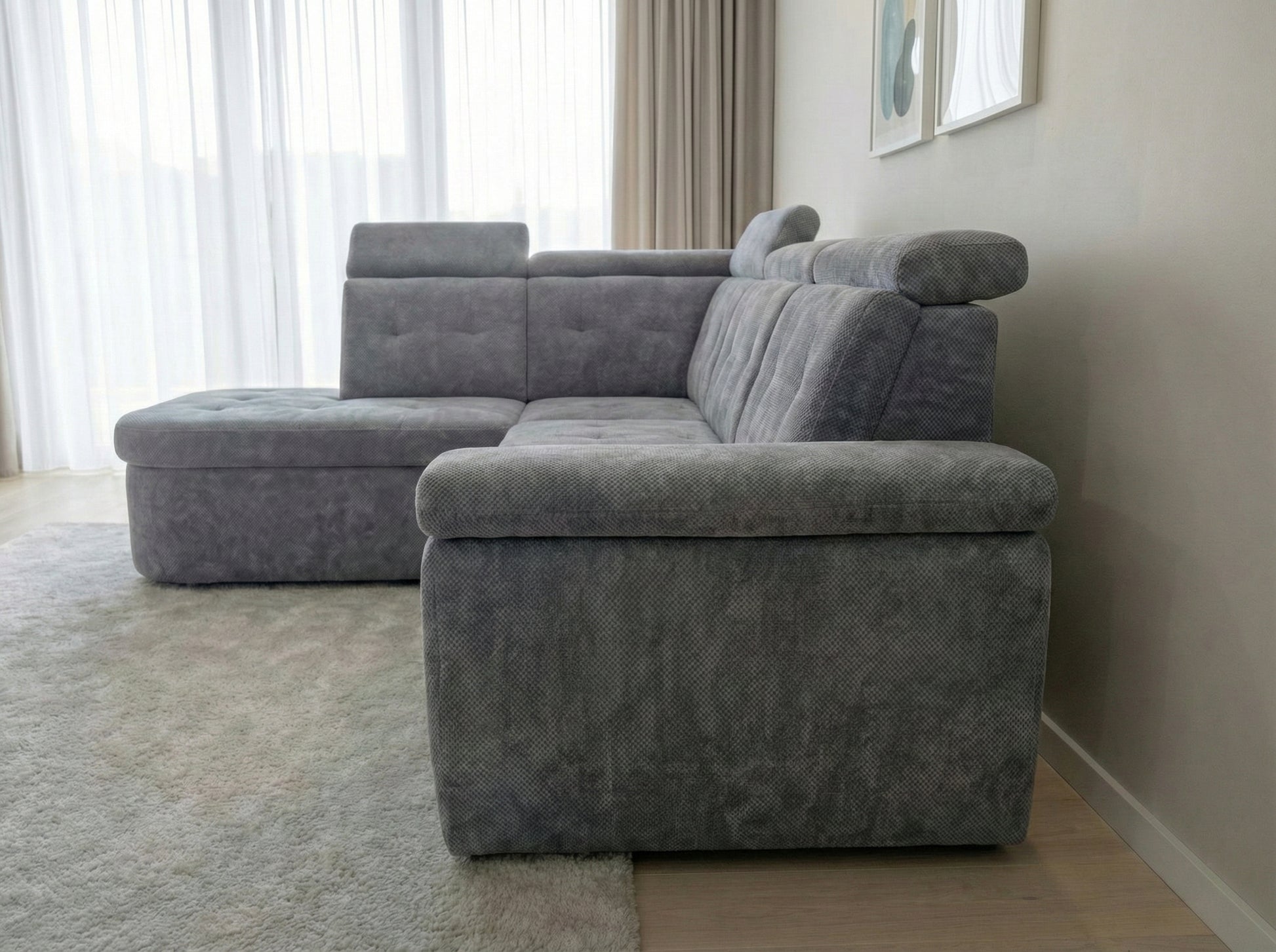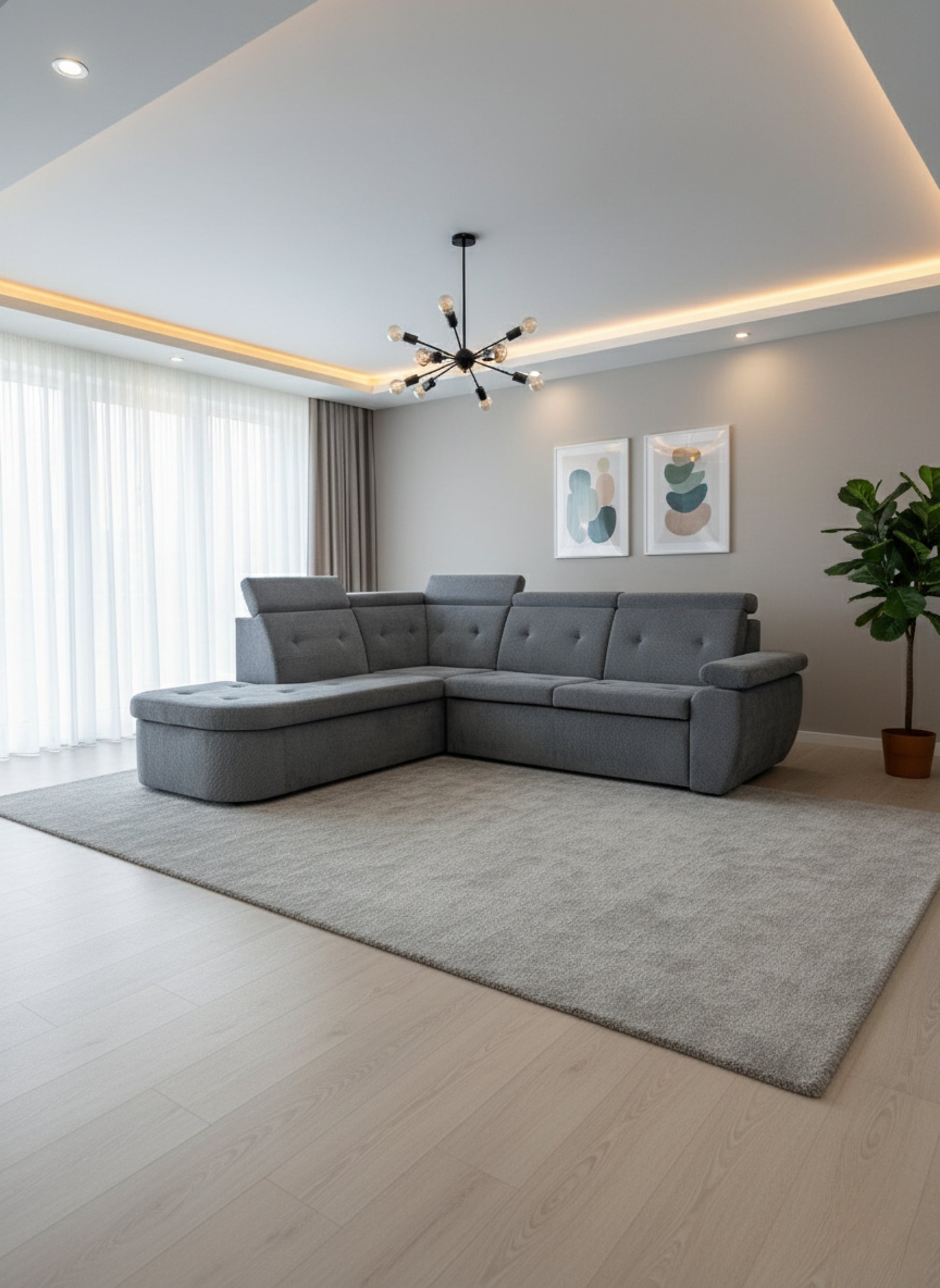Un colțar modular în formă de L, care aduce echilibrul perfect între eleganță și confort. Designul său simplu și proporțiile armonioase îl fac alegerea ideală pentru orice living, de la apartamente moderne la case spațioase.
