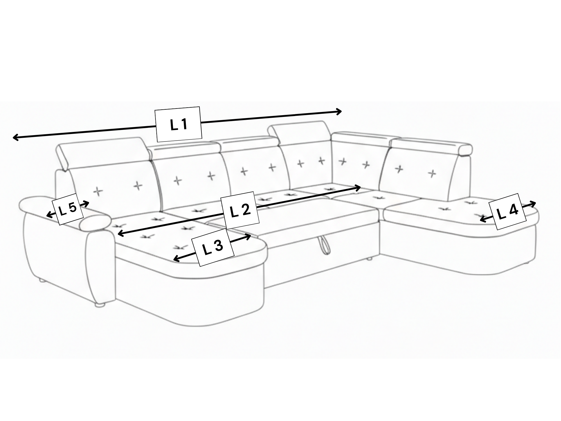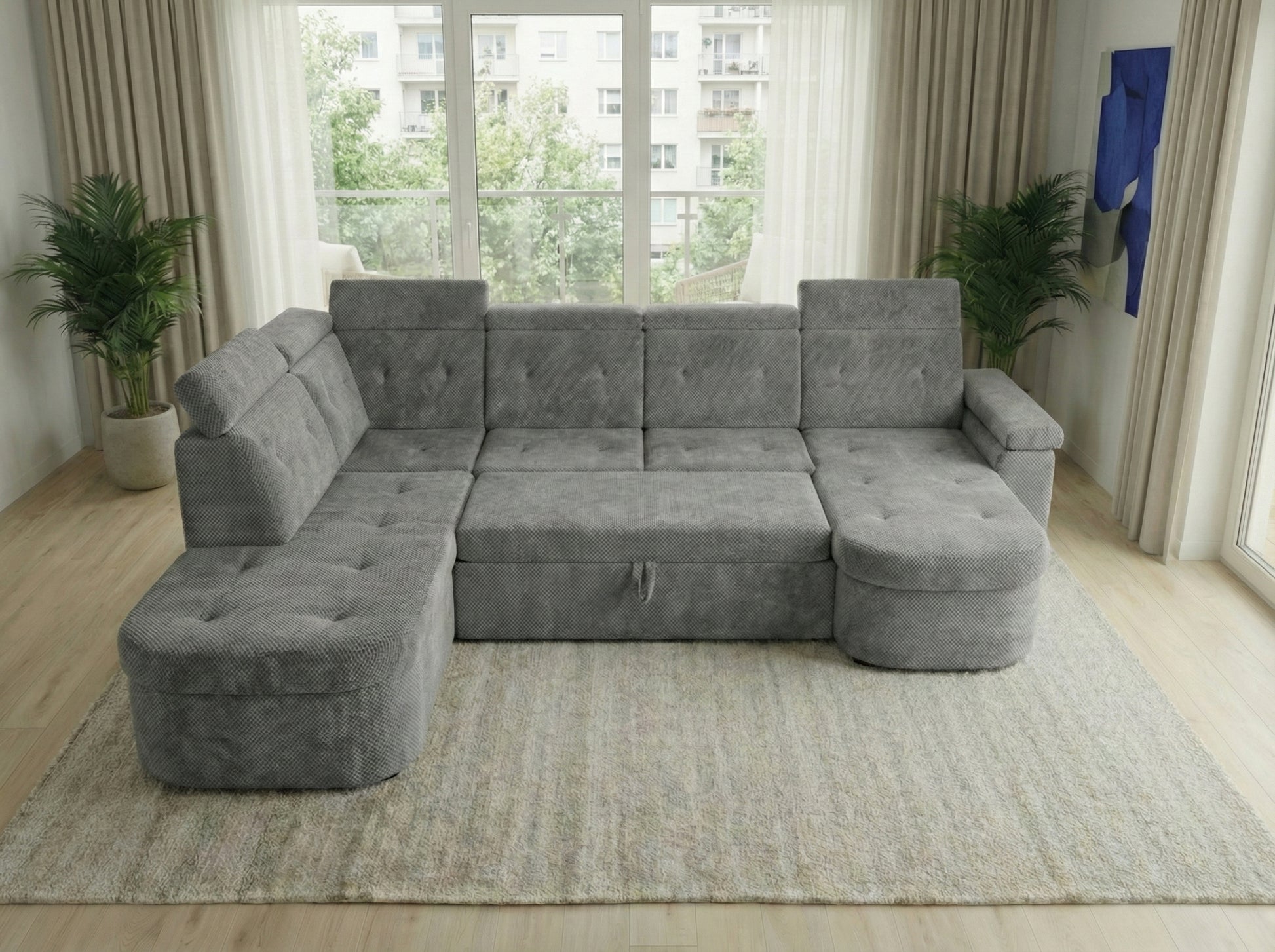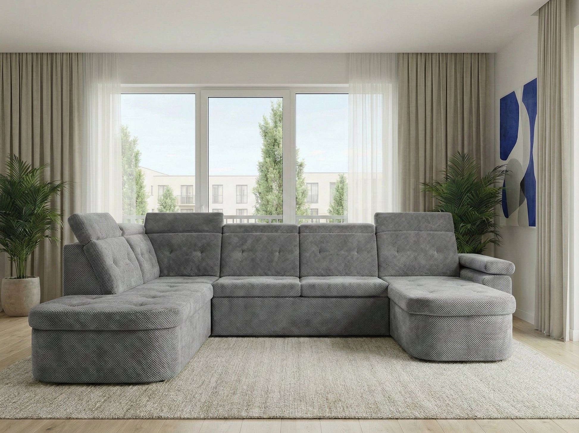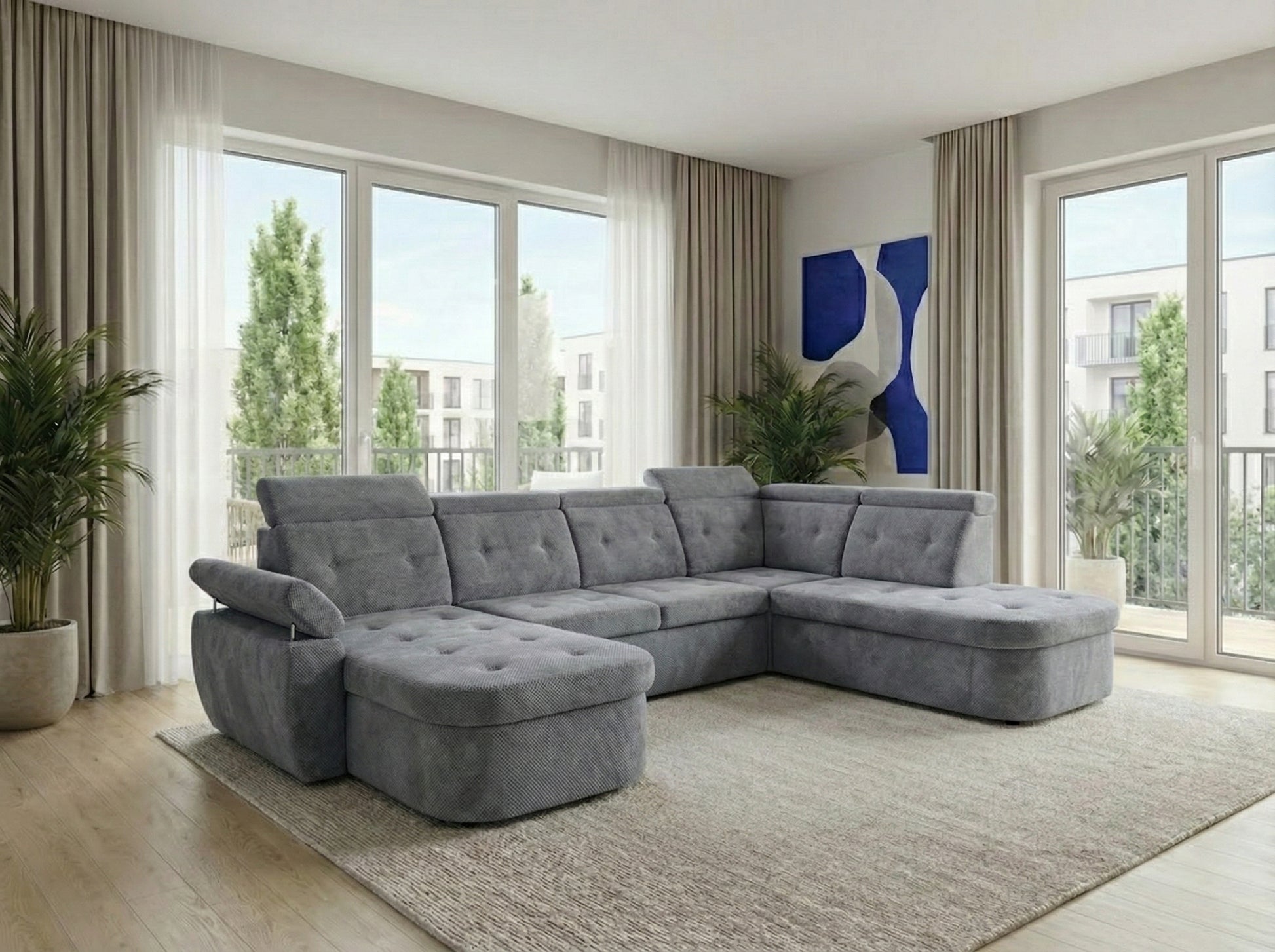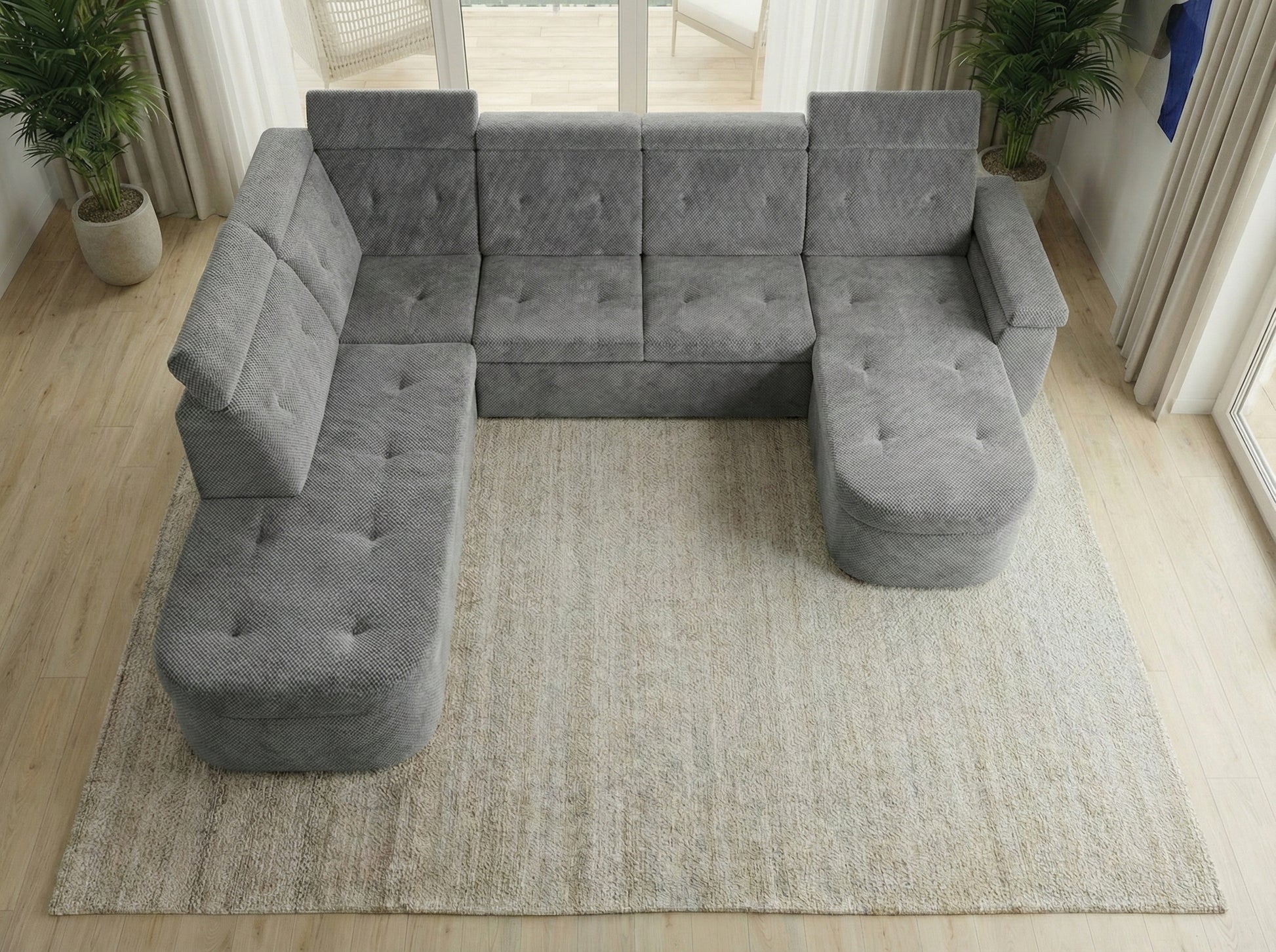 Un colțar modular în formă de U, creat pentru a oferi spațiu generos și confort deplin. Este ideal pentru livinguri mari, unde devine piesa centrală a încăperii.
